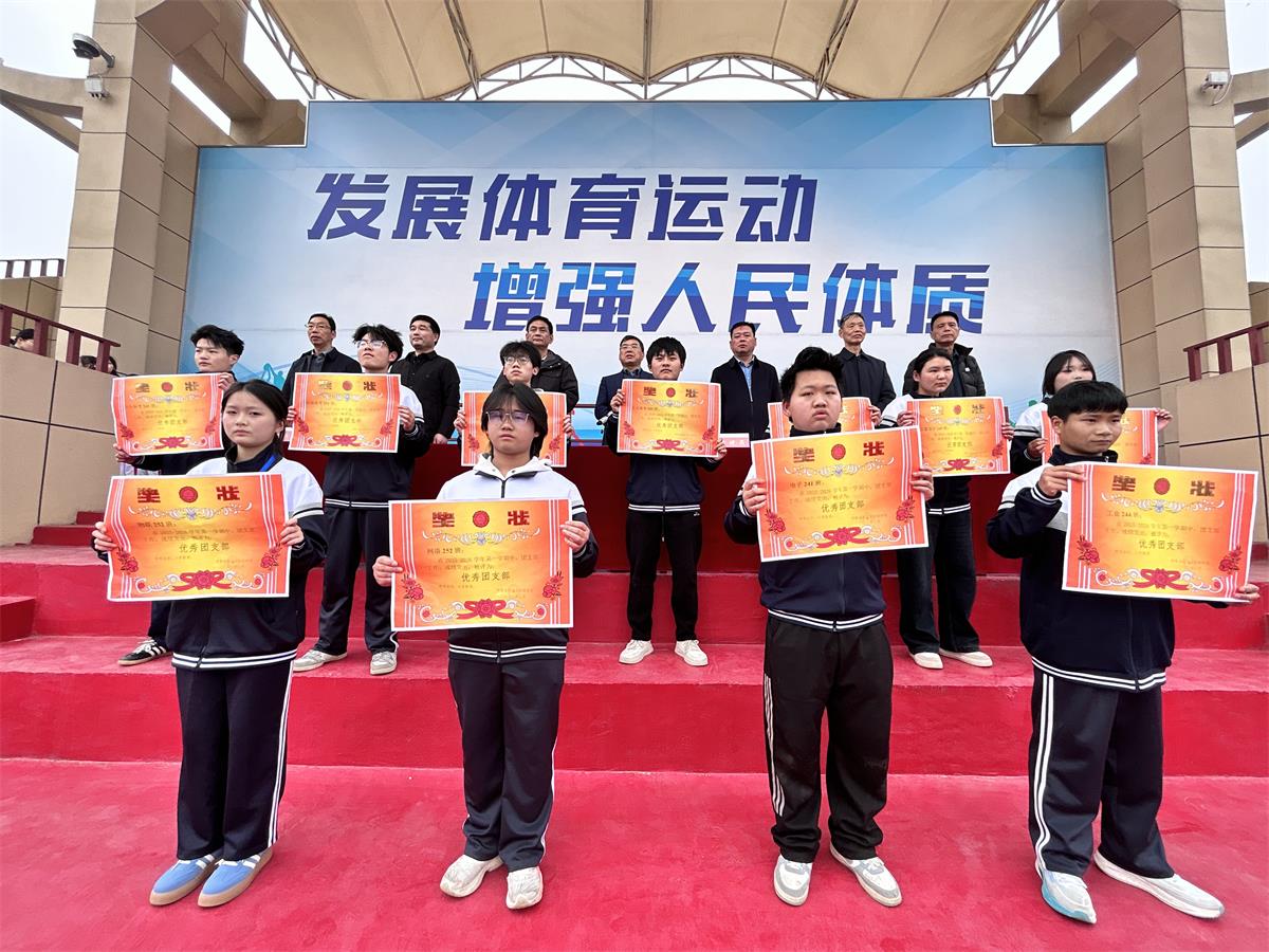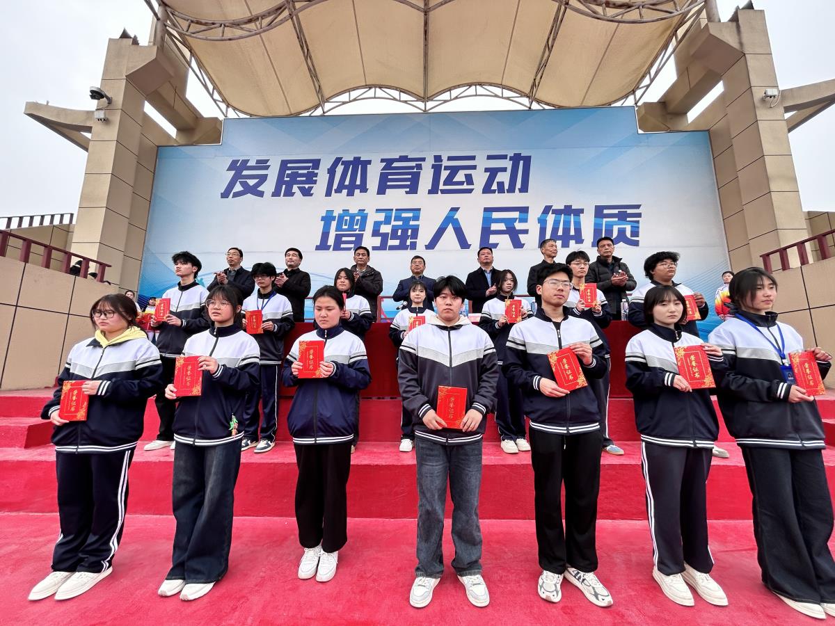 春潮涌动启新程,榜样领航逐梦行。为表彰先进、树立典型,凝聚师生奋进力量,3月24日下午,河南省驻马店财经学校20252026学年第一学期学生表彰大会在学校运动场隆重举行。学校党委书记李金浩,副校长周志礼、吕中礼,纪委书记焦鹏党委委员刘建党、刘华威全体班主任及学生齐聚一堂,共同见证荣耀时刻。大会由校长于建昌主持。